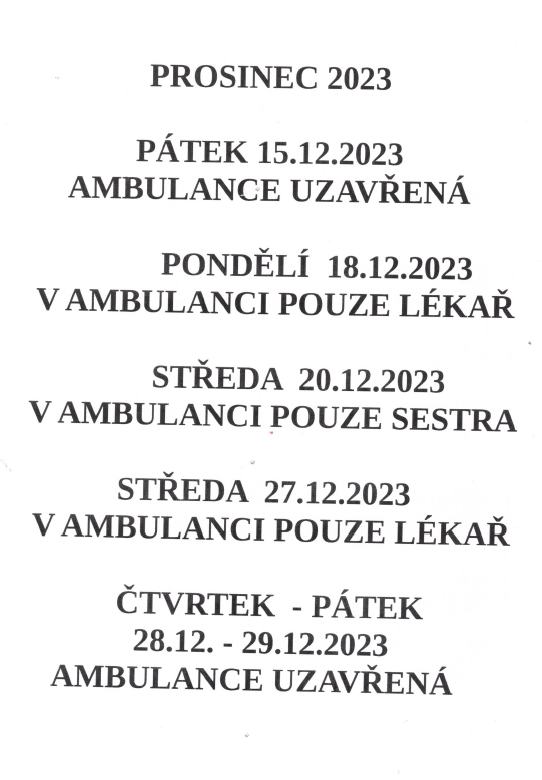 MUDr. Tomáš Vais - provoz ordinace prosinec 2023