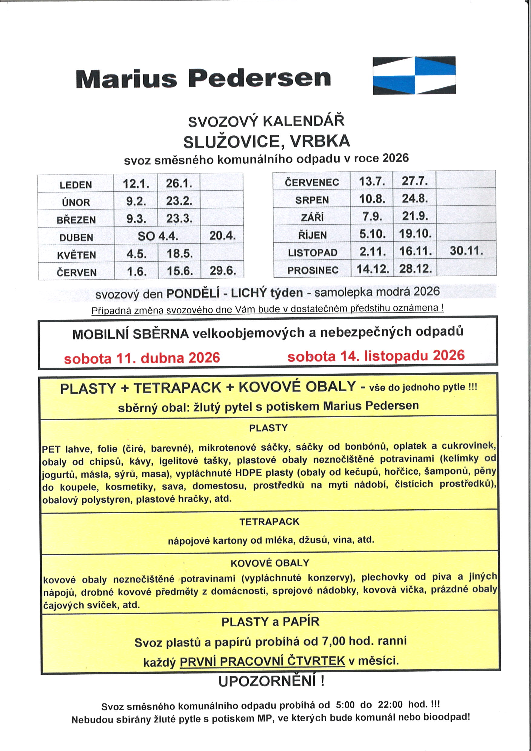 svozový kalendář 2026 - komunální odpad Typ: JPG obrázek, Velikost: 593.45 kB
